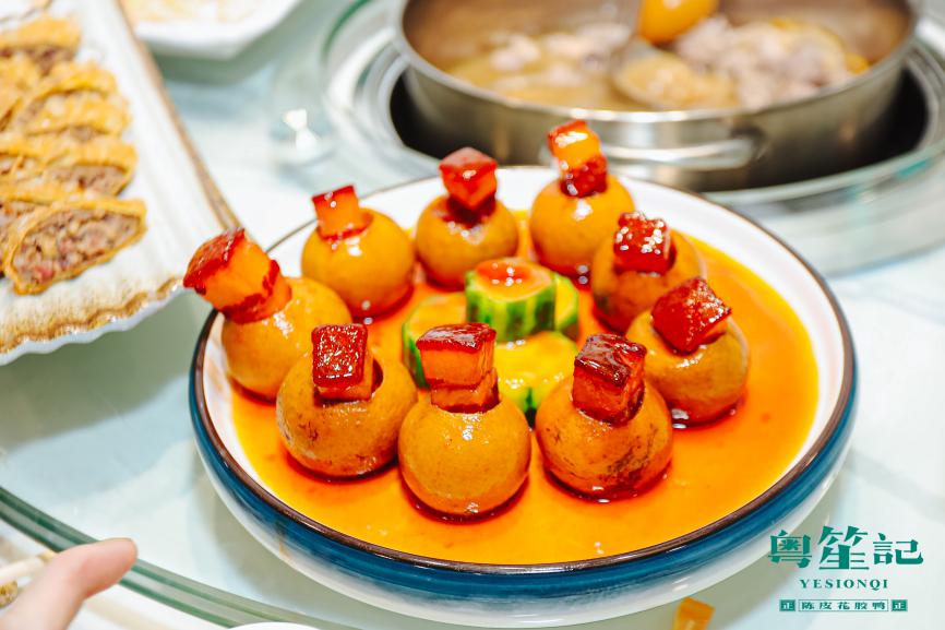 粵笙記陳皮菜式種類豐富且菜式新穎,除了“新會(huì)陳皮花膠鴨”之外,入口即化卻不膩口“新會(huì)柑橘紅燒肉”、外脆里嫩的“紅燒陳皮乳鴿”、酥香味美的“匠心陳皮骨”、開胃甜蜜的“陳皮番茄”,還有小時(shí)候的回憶“陳皮缽仔糕”,這些特色陳皮菜肴都不容錯(cuò)過。