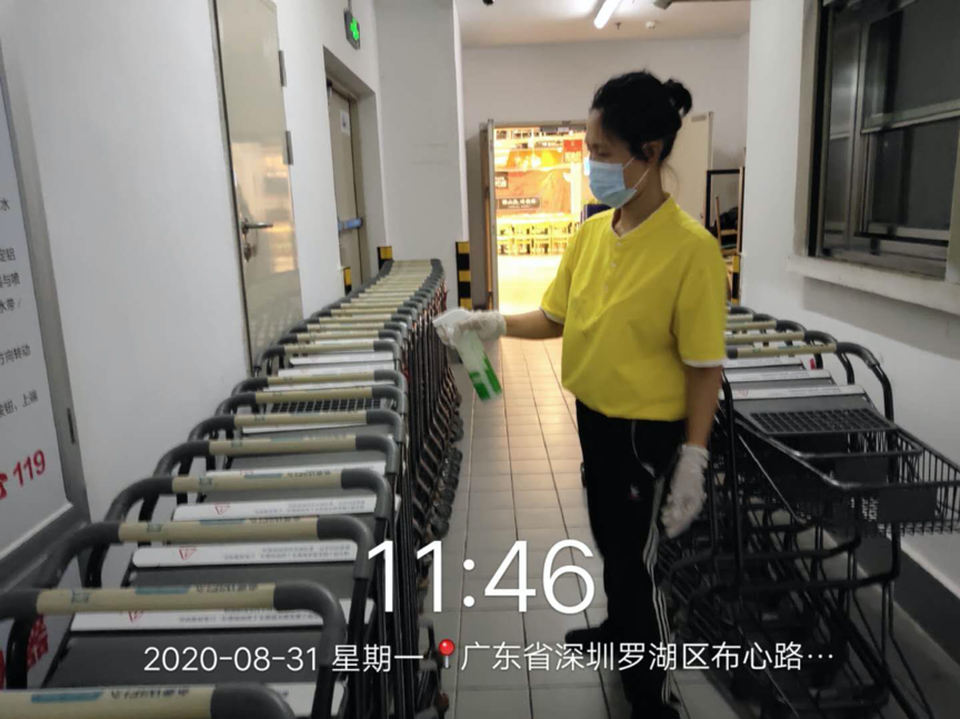 場所上,消毒設(shè)備每隔4個小時會有一次擦試,賣場地板會有每隔2個小時一次消毒。每個檔口工作人員使用的器具,每隔2個小時也有一次消毒。確保整個購物場所的安全。 (常軍平 )