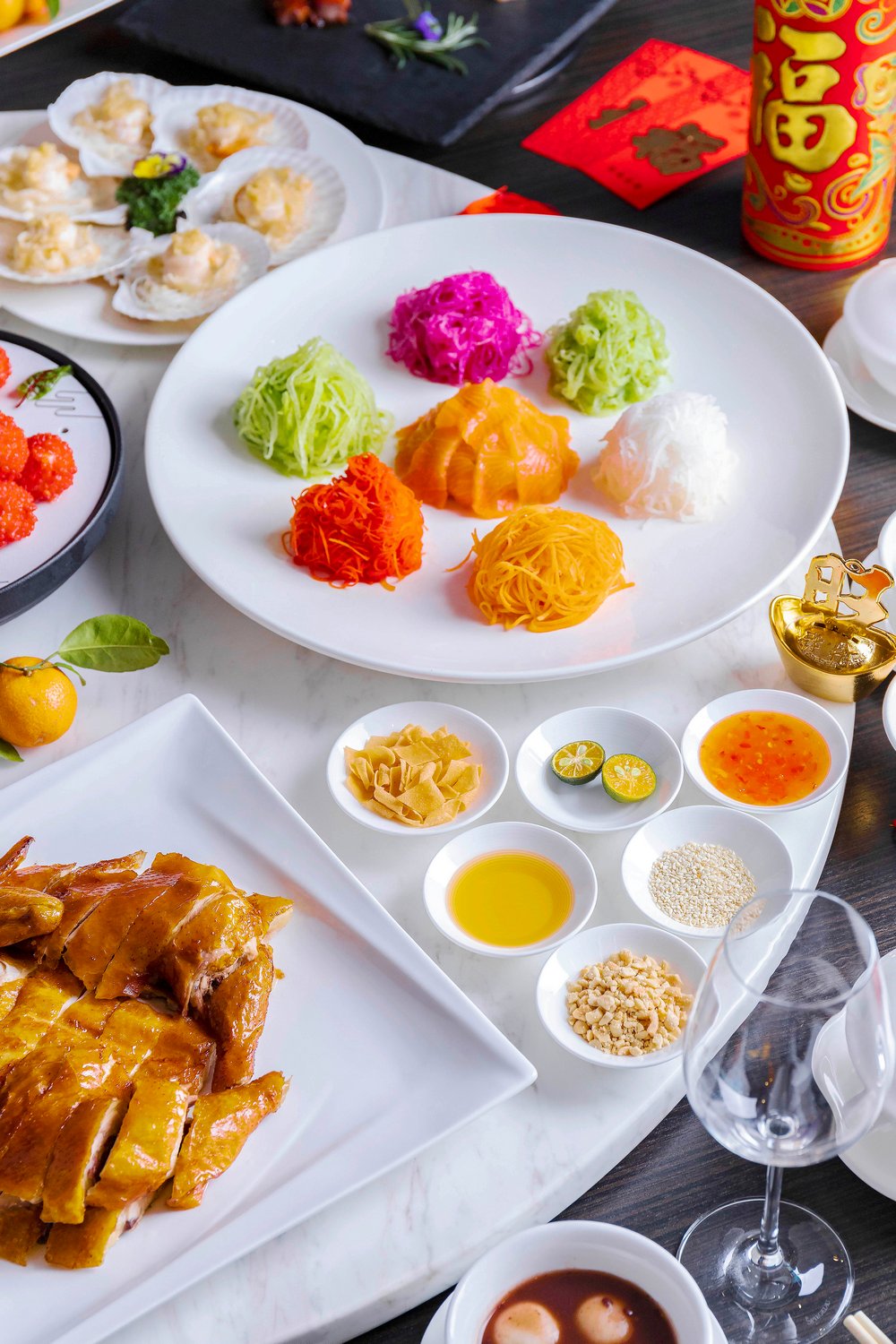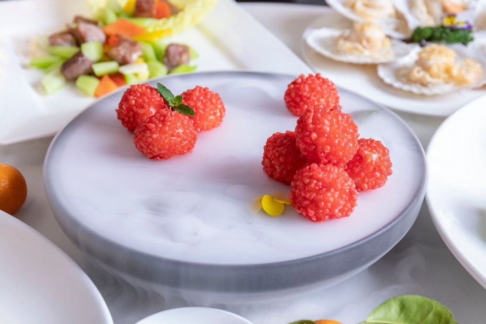 除了兩款福袋,另外還有5款年夜飯可以選擇,“迎春接福宴”、“闔家團(tuán)圓宴”、“萬事如意宴”、“花開富貴宴”以及“金玉滿堂宴”。金茂深圳JW萬豪酒店中餐廳主廚劉師傅精心設(shè)計(jì)的賀歲菜肴除了擺盤講究之外,亦道道有講究。如:寓意“風(fēng)生水起”的三文魚生撈起,以三文魚生為主要食材,配以六款色彩繽紛的蔬菜絲,享用時(shí)眾賓客齊齊用筷子高高撈起,在開席即可討個(gè)“越撈越旺”的好彩頭!還有上菜時(shí)冒出“仙氣”的爆汁紅顏妃子笑,寓意“吉祥如意”、寓意“牛氣沖天”的香芹腰果牛肉粒、“年年有余”的清蒸老虎斑、“五谷豐登”的總廚鮑汁炒飯等多款吉祥菜式。