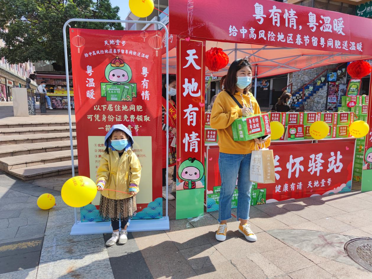 據(jù)了解,天地壹號(hào)在廣東市場(chǎng)開展的“粵有情粵溫暖”公益活動(dòng),2月1日至2月3日,將在廣州、深圳、東莞、佛山、中山、珠海、惠州等7個(gè)珠三角城市22個(gè)區(qū)鎮(zhèn)的中心地帶開設(shè)“關(guān)懷驛站”,共準(zhǔn)備了近3萬份健康禮包?!拔覀?cè)诰〇|還準(zhǔn)備了2000萬元的親情補(bǔ)貼券,如果大家想家了,可以領(lǐng)取這份親情補(bǔ)貼,為家人寄去思念和祝福?!鄙鲜鲐?fù)責(zé)人說。