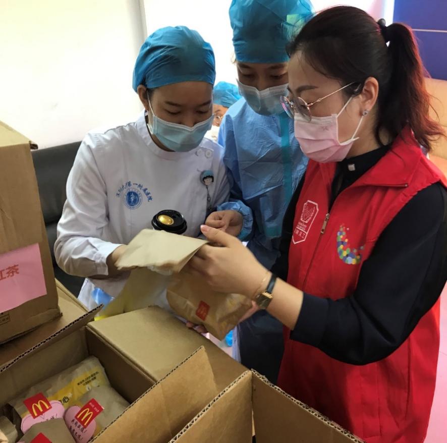 深圳麥當勞“麥麥義工團”小伙伴們?yōu)榭挂咭痪€醫(yī)護人員和工作送去愛心餐食