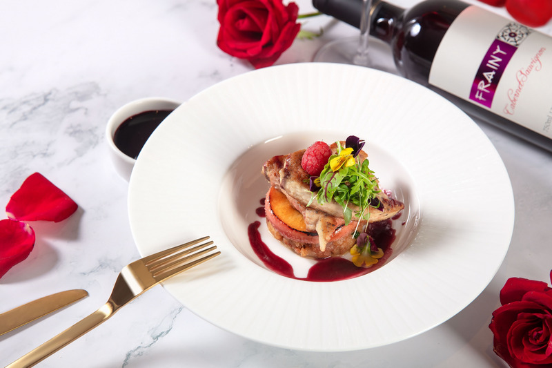 共譜濃情蜜意之夜,怎少得了甜品加乘。酒店餅房行政總廚趙偉以當季時令水果搭配馥郁絲滑的上等巧克力等食材,精心呈獻包括覆盆子蜜桃蛋糕、草莓荔枝蛋糕、咖啡白巧克力櫻桃蛋糕、玫瑰花茶紅酒布丁杯等8款作品。此外,位上菜品新增香煎鵝肝配紅酒焦糖蘋果和藍莓紅酒汁及中式牛奶燉花膠糖水,中西風(fēng)味相輔相成,都將成就獨特的美味記憶。當天現(xiàn)場將會有小提琴手駐場演奏,妙音悅耳,為甜蜜之夜增添更多柔情。