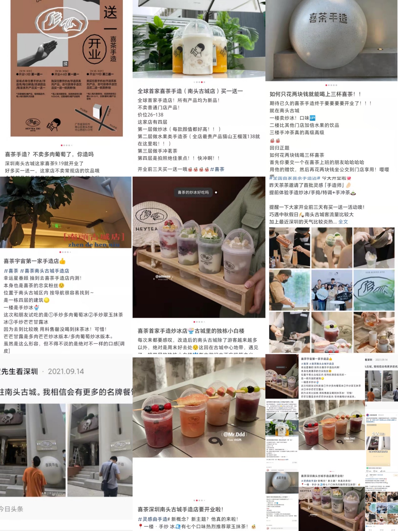 雖然才是正式營(yíng)業(yè)的第一天,但喜茶南頭古城店憑借多款手造新品,以及傳統(tǒng)與現(xiàn)代結(jié)合的靈感空間設(shè)計(jì),迅速聚攏了超強(qiáng)人氣。在社交媒體平臺(tái)上,“打卡喜茶手造店”“喜茶手造店初體驗(yàn)”“喜茶手造飲品測(cè)評(píng)”的話題也頻頻出現(xiàn)。