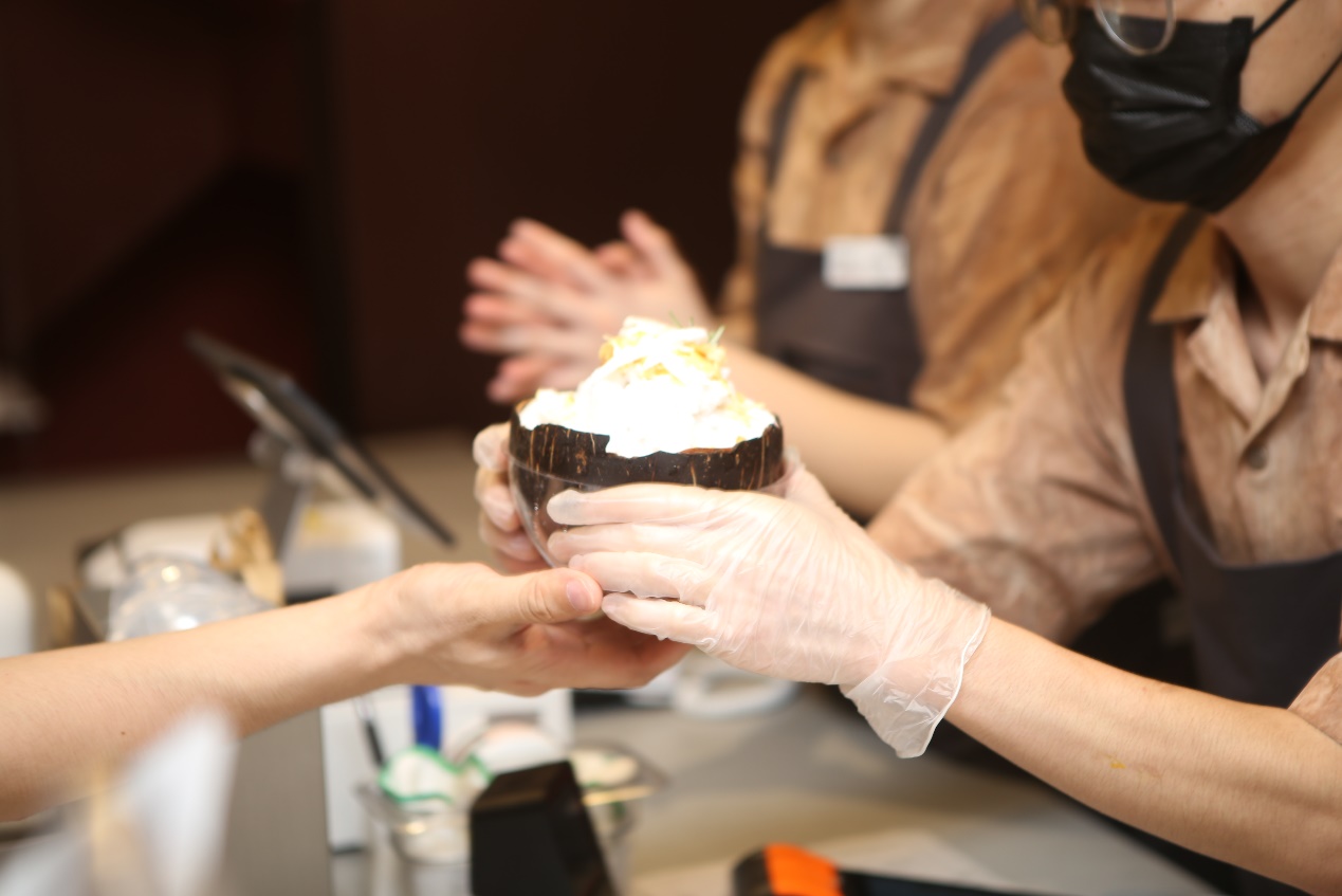 一次性提供如此豐富的手造新品,既是喜茶產(chǎn)品研發(fā)能力的集中體現(xiàn),又是為顧客奉上的極致體驗(yàn)。記者在現(xiàn)場(chǎng)看到,10點(diǎn)正式營(yíng)業(yè)后,在一樓點(diǎn)單區(qū),店員們開(kāi)始耐心地向顧客進(jìn)行新品介紹和推薦。一些顧客則留意到正在進(jìn)行的現(xiàn)場(chǎng)炒冰,“剛剛做的那份是什么?我就要那個(gè)!”而二層供應(yīng)的“實(shí)在整顆生椰”,也讓不少顧客愛(ài)不釋手。