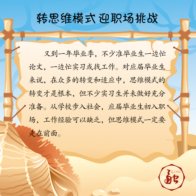 又到一年畢業(yè)季,不少準(zhǔn)畢業(yè)生一邊忙論文,一邊忙實(shí)習(xí)或找工作。對應(yīng)屆畢業(yè)生來說,在眾多的轉(zhuǎn)變和適應(yīng)中,思維模式的轉(zhuǎn)變才是根本,但不少實(shí)習(xí)生并未做好充分準(zhǔn)備。從學(xué)校步入社會,應(yīng)屆畢業(yè)生初入職場,工作經(jīng)驗(yàn)可以缺乏,但思維模式一定要走在前面
