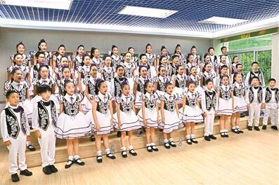 “合唱需要一種力量,叫團(tuán)結(jié)。它給了我一個(gè)快樂美好的展示自我的舞臺(tái)?!薄皡⒓雍铣獔F(tuán),不但提高了我的音準(zhǔn)和節(jié)奏感,還讓我意識(shí)到團(tuán)隊(duì)精神、組織紀(jì)律性以及集體榮譽(yù)感?!薄耙?yàn)楹铣?,我學(xué)會(huì)了堅(jiān)持,不管在臺(tái)下練多久多累,都為了臺(tái)上絢麗的幾分鐘。”在合唱團(tuán)音樂教室門口,五彩繽紛的音樂小報(bào)上展示著孩子們的合唱風(fēng)采,稚嫩的筆觸表達(dá)了孩子們對(duì)合唱的熱愛。