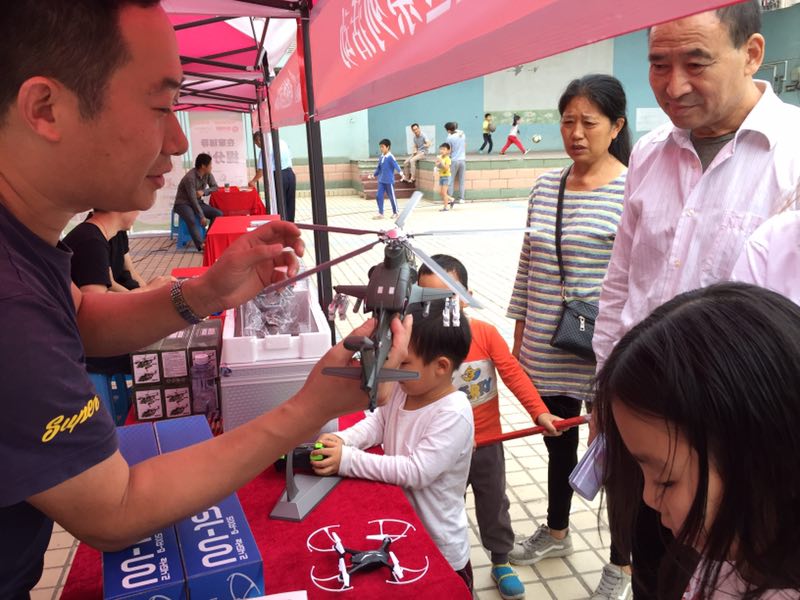 “哇,看它飛起來了”廣場另一邊,總簇擁著一群群航天科技迷,在現(xiàn)場操控員的引導下,不少小朋友躍躍欲試,伴隨著啟動到起飛,方向控制,無人機一次次在歡呼雀躍聲中騰空飛躍......騰宇達航空航天科技產(chǎn)業(yè)有限公司的無人機項目點燃了青少年的航天夢,通過現(xiàn)場引導與試飛,給航天迷打造樂園同時,也傳播了無人機飛行相關(guān)科普知識,對激發(fā)青少年航天興趣具有重要作用。