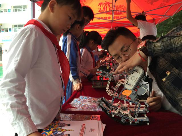 同期,愛匯百變教育科技有限公司也給同學(xué)帶來了炫酷多彩的編程大餐。通過對(duì)EV3編程機(jī)器人項(xiàng)目LEGO方針機(jī)械機(jī)構(gòu)以及LEGO圖形化編程展示,邀請(qǐng)現(xiàn)場同學(xué)進(jìn)行對(duì)套件進(jìn)行組裝、編程控制,普及編程和電磁感應(yīng)現(xiàn)象、電動(dòng)基本原理、電路等物理知識(shí),鍛煉學(xué)生科學(xué)創(chuàng)造思維,培養(yǎng)學(xué)科興趣。