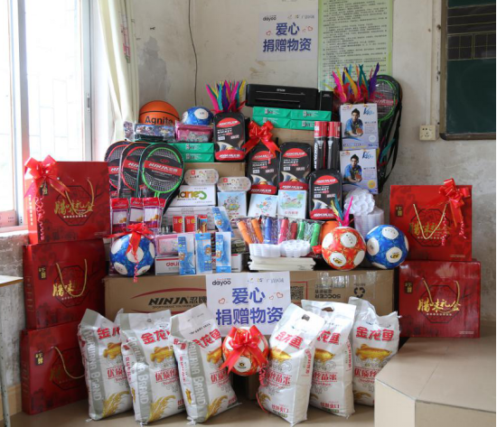 在捐贈儀式上,洋洋公益團隊為橫槎小學(xué)的師生們送上籃球、足球、羽毛球、作業(yè)本、鉛筆、橡皮檫、文具盒、打印機等文體用品和教學(xué)用具,以及大米、臘腸等生活物資。橫槎小學(xué)謝校長代表學(xué)校對愛心團隊一行表示感謝,并將錦旗和學(xué)生用心勾勒的美術(shù)作品回贈給碧桂園集團廣清區(qū)域、廣州日報大洋網(wǎng)等愛心代表。