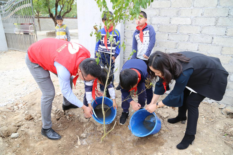 播種希望的幼苗,為綠色公益助力。在“愛心植樹林”活動環(huán)節(jié),孩子們懂事地幫公益團隊夯土、扶樹苗、澆水,一起種下代表愛心的樹苗,也讓這份溫暖通過愛心樹苗繼續(xù)傳遞下去。下午課間活動時,孩子們拿著嶄新的籃球、足球、跳繩,歡快地同小伙伴一起玩耍,歡笑聲瞬間洋溢在校園里。