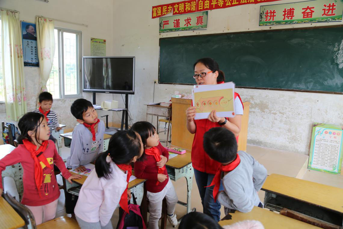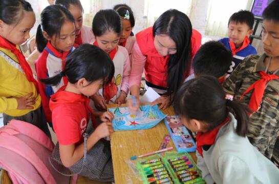 龍門縣是中國現(xiàn)代民間繪畫畫鄉(xiāng),以“龍門農(nóng)民畫”著稱。就讀于龍門縣橫槎小學(xué)的學(xué)生,因?qū)W?;A(chǔ)設(shè)施落后,教學(xué)物資匱乏,無法開展相關(guān)的農(nóng)民畫藝術(shù)課程。為了幫助孩子們通過繪畫感受自然生態(tài)與鄉(xiāng)村生活之美,傳承民間繪畫藝術(shù),洋洋公益團隊中來自“德藝軒”美術(shù)培訓(xùn)機構(gòu)的彭小利老師開展“創(chuàng)意繪畫·神秘的海洋世界”美術(shù)小課堂,結(jié)合海洋中形態(tài)各異的生物,聲情并茂地講授素描、水彩等繪畫知識,讓孩子們感受繪畫藝術(shù)的樂趣。