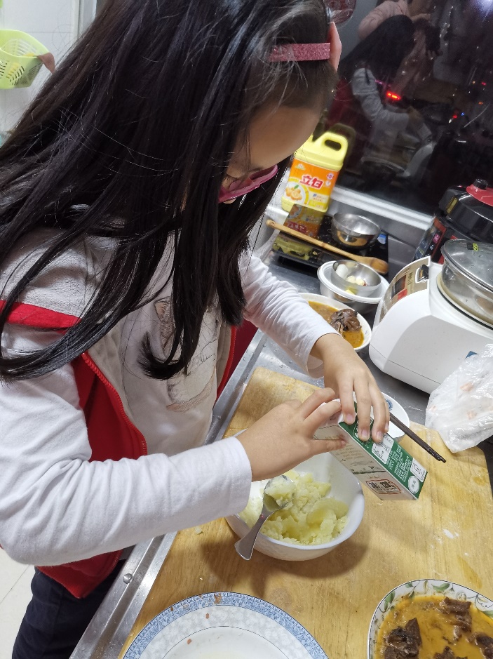 我們 經(jīng)常給奶奶打下手,烹飪也是其樂無窮。茜茜最喜歡的是可以媲美橡皮泥的面食,捏來捏去很有趣,還可以嘗試些喜歡的食物,土豆泥,曲奇,等等。