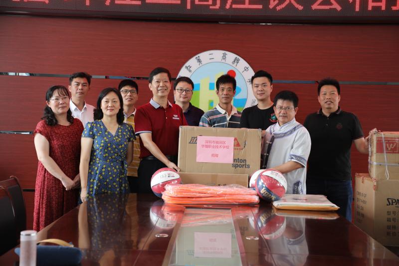 幫扶捐贈儀式上,華強職校代表團代表學校向環(huán)江職校捐贈了7箱文體教學用品,有毛筆、宣紙,籃球、羽毛球拍、乒乓球拍等,價值2萬多元人民幣,表達了華強職校對對口支教的兄弟學校的深情厚誼。