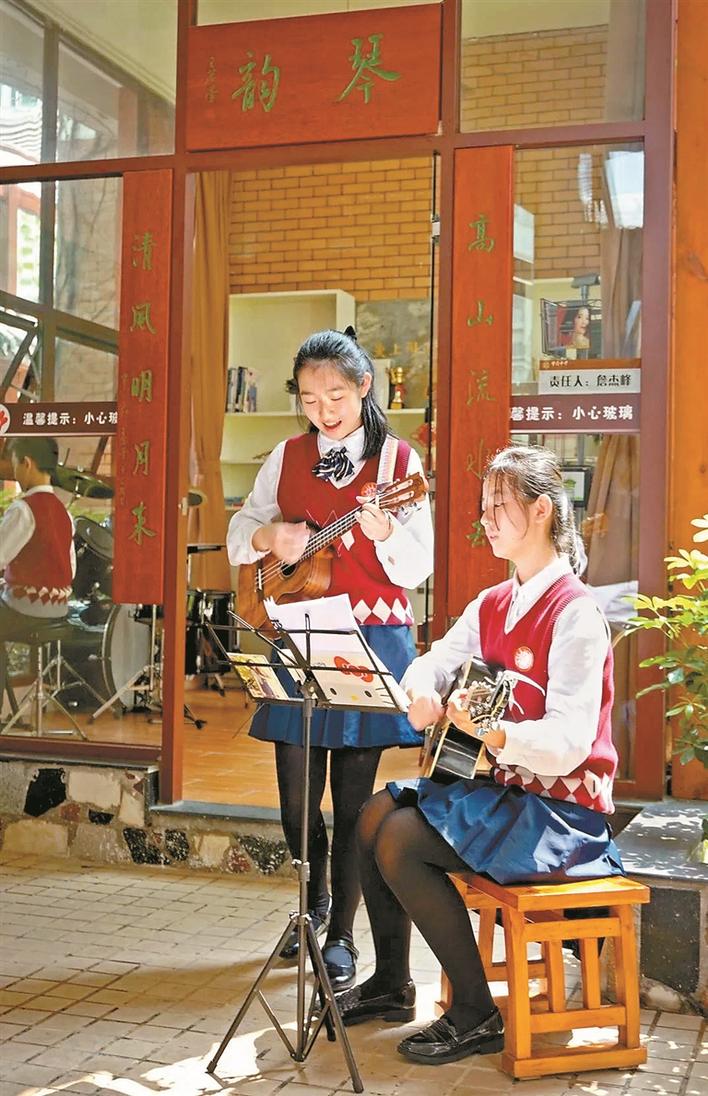 校園一角的“樂·舞臺”上擺放著一架鋼琴,陳鐵成校長說:“在沒有疫情的時候,這架鋼琴是不上鎖的,任何老師或?qū)W生都可以彈奏。同樣開放的還有琴韻閣、清心閣,不要擔心學生會破壞這些東西,美自然地呈現(xiàn)在學生們面前,自然地發(fā)生,真正的教育就是在這樣的情境中發(fā)生的。”