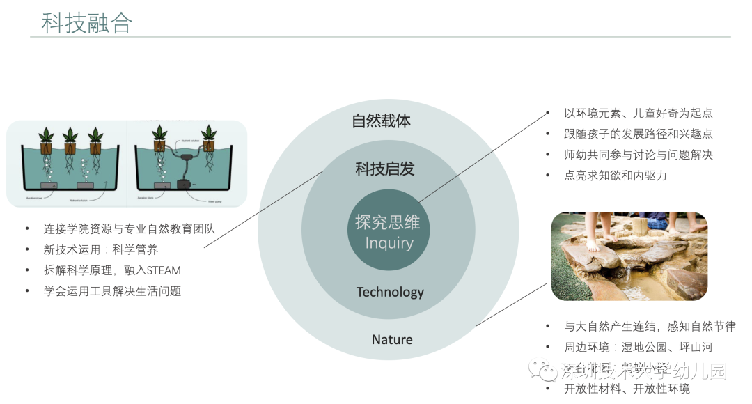 園舍內(nèi),聯(lián)動大學學院資源和專業(yè)自然教育團隊打造自然教育場所,使得科技與自然在幼兒環(huán)境中有機結(jié)合。自然在前,技術(shù)運用在后,孩子將用探究的眼光發(fā)現(xiàn)如何運用技術(shù)解決生活問題。