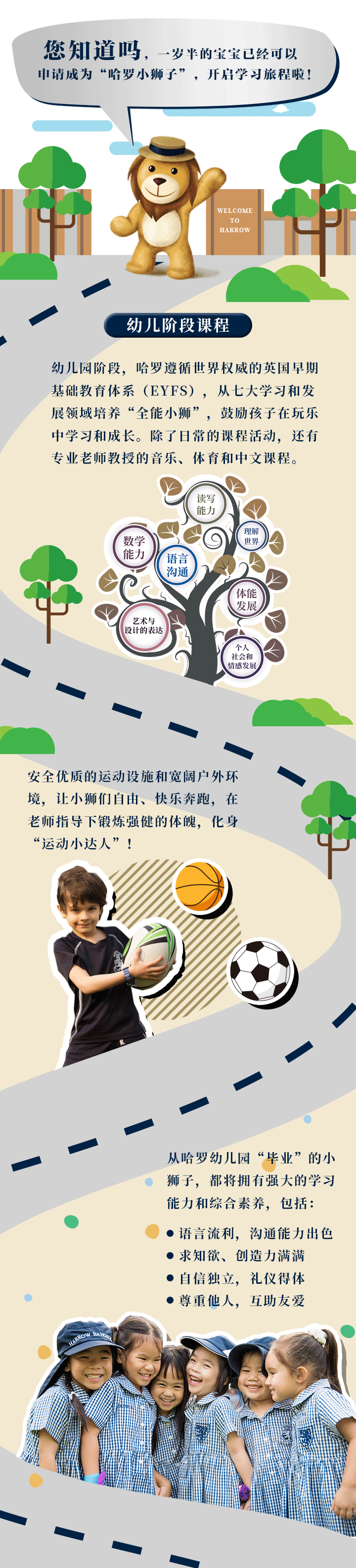 今天,我們就來用一張圖帶您讀懂,哈羅K-12課程內容。了解孩子從哈羅的幼兒園到高中畢業(yè)班將從課內課外學些什么、重點培養(yǎng)哪些出眾技能(K-12,即幼兒園至高中的教育)。為躋身著名大學做充足準備想了解更多?下拉至文末掃碼關注哈羅深圳前海官方微信,了解學校最新動態(tài)!