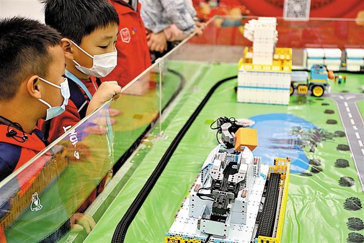 新奇的科技展品,激發(fā)了孩子們濃厚的興趣。