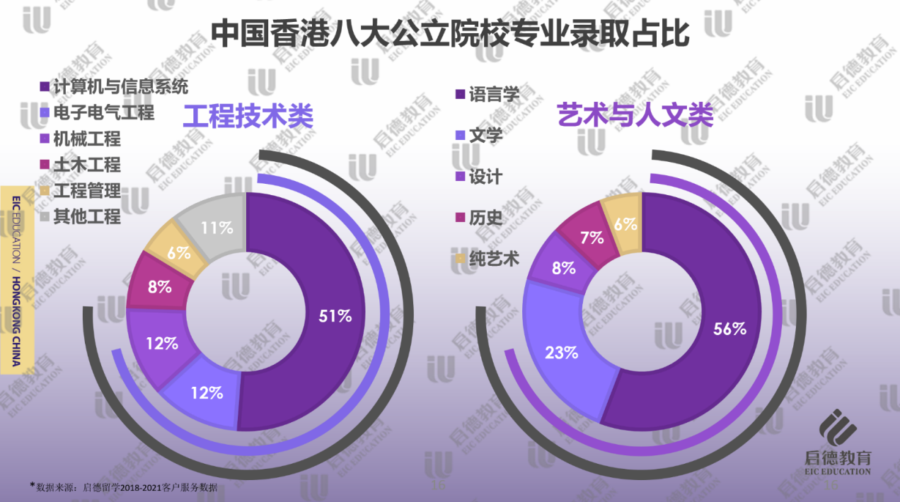 計(jì)算機(jī)與信息系統(tǒng)(51% )、電子電氣工程(12% )和機(jī)械工程(12% )在工程技術(shù)類(lèi)學(xué)科中錄取占比最多。作為金融中心的香港,銀行或金融機(jī)構(gòu)對(duì)于復(fù)合型人才的需求非常大,除了港校的工程學(xué)院設(shè)置計(jì)算機(jī)與信息系統(tǒng)專(zhuān)業(yè)外,很多學(xué)校都有商學(xué)院和工程學(xué)院聯(lián)合授課的商務(wù)資訊系統(tǒng)類(lèi)專(zhuān)業(yè)。得益于深圳高科技產(chǎn)業(yè)對(duì)通信方面人才的需求量,去香港就讀電子電氣工程專(zhuān)業(yè)的學(xué)生也在增多,除了電子工程、通信工程弱電專(zhuān)業(yè)以外,香港大學(xué)和香港理工大學(xué)還設(shè)有針對(duì)強(qiáng)電的相關(guān)課程,學(xué)生畢業(yè)后可回到內(nèi)地從事電力系統(tǒng)的相關(guān)工作。QS排名前100的5所名校均設(shè)置機(jī)械工程專(zhuān)業(yè),工程類(lèi)專(zhuān)業(yè)的錄取難度相對(duì)略低,學(xué)生可獲得更大的入讀名校的機(jī)會(huì)。