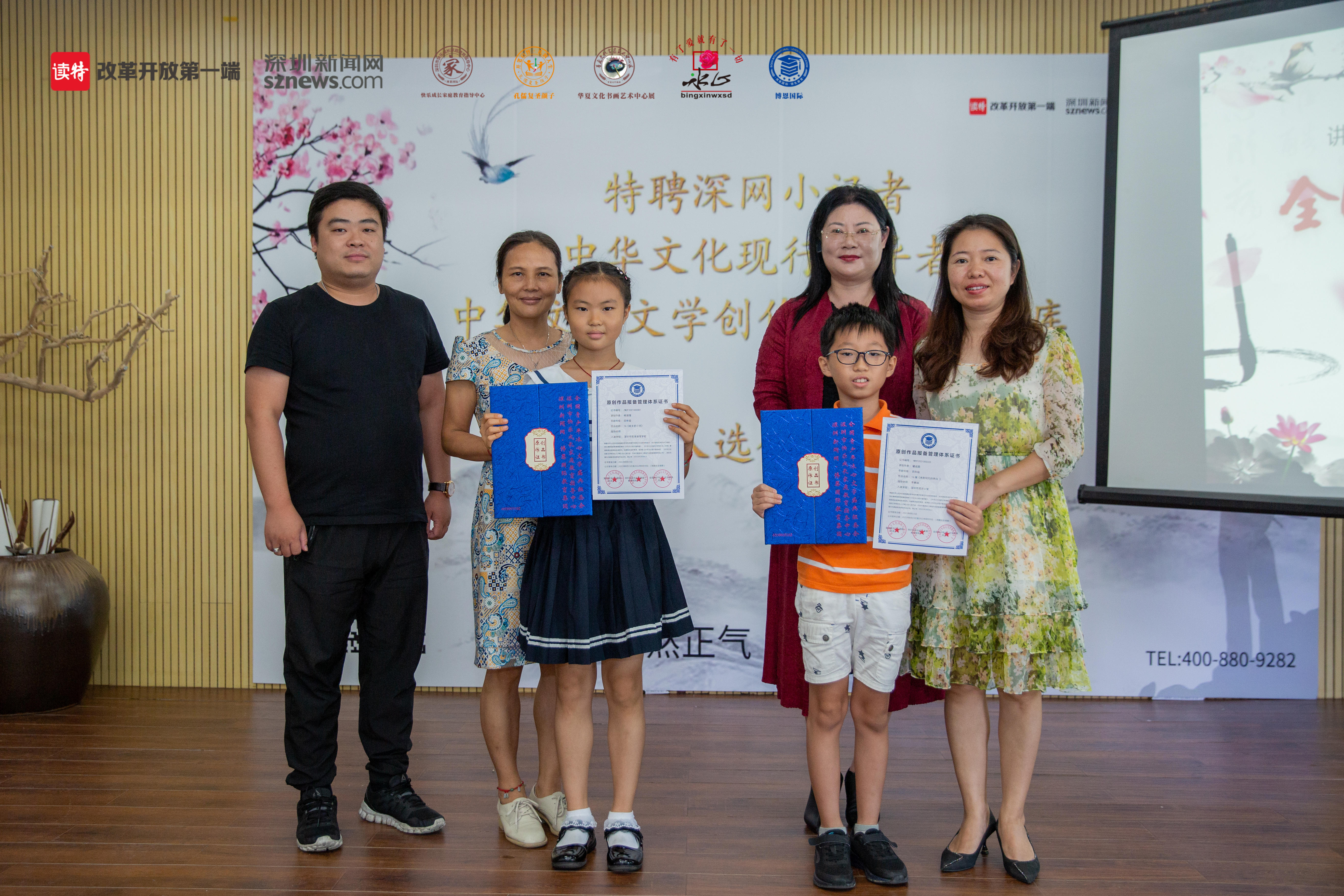 活動現(xiàn)場,組委會還為入選《中華文化現(xiàn)行倡導(dǎo)者》、《中華文化文學(xué)特長生人才庫》、深網(wǎng)小記者、《原創(chuàng)作品報備》、復(fù)賽晉級生等優(yōu)生代表頒獎頒證。