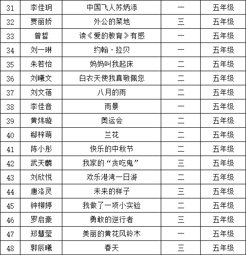 自2021年1月,活動(dòng)征稿啟動(dòng)以來,獲得了深圳市廣大中小學(xué)生、教師、文學(xué)愛好者的熱烈響應(yīng)積極參與,吸引了深圳百余所學(xué)校的上萬人關(guān)注報(bào)名?,F(xiàn)公布南山區(qū)荔香學(xué)校晉級復(fù)賽名單如下: