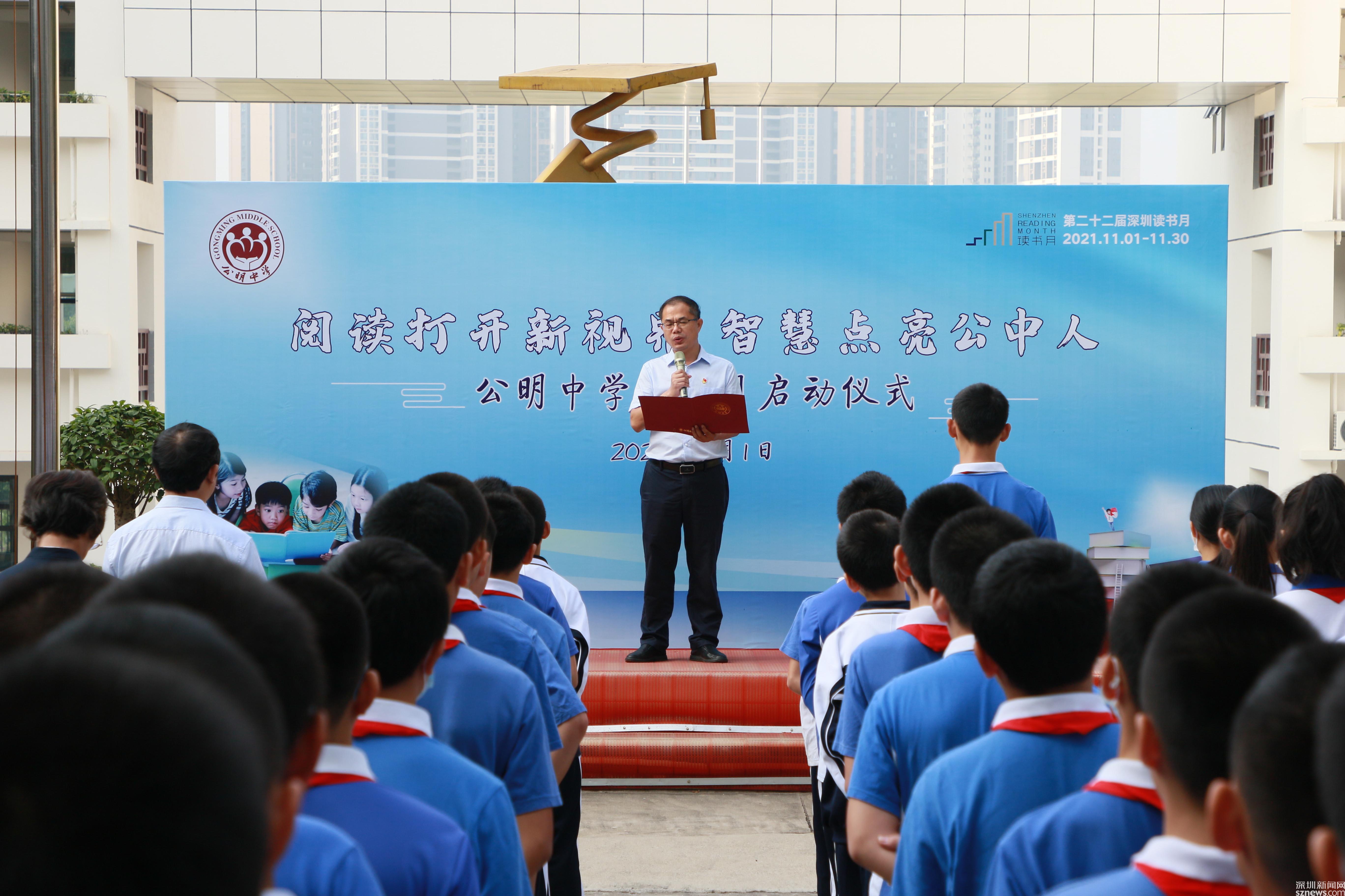“公明中學將用閱讀賦予校園知書達理的文化氣息,用知識開闊眼界,用經典浸潤心靈,用書為伴博覽同行。”華建明校長指出,深圳正傾力打造具有世界影響力的閱讀文化品牌,公明中學將以深圳讀書月為依托,由黨員、行政帶頭學習,做讀書活動的組織者、參與者和引導者,做師生學習的表率,鼓勵師生愛讀書,讀好書,學會讀書,在閱讀中發(fā)揮“恒、勤、思、用”的精神,引導閱讀文化向縱深發(fā)展,在全校形成“專家指導、陣地支持、全員參與”的讀書格局,增厚公中文化底蘊。