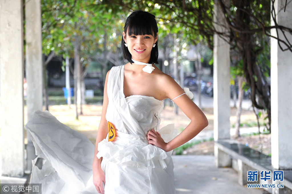 ????2013年11月15日,湖北經(jīng)濟(jì)學(xué)院法商學(xué)院社團(tuán)聯(lián)合會(huì)舉辦的法商之星婚紗設(shè)計(jì)大賽上,25位“模特”身著3米衛(wèi)生紙制作的創(chuàng)意設(shè)計(jì)婚紗行走校園,驚艷全場(chǎng)。(圖片來源:視覺中國(guó))