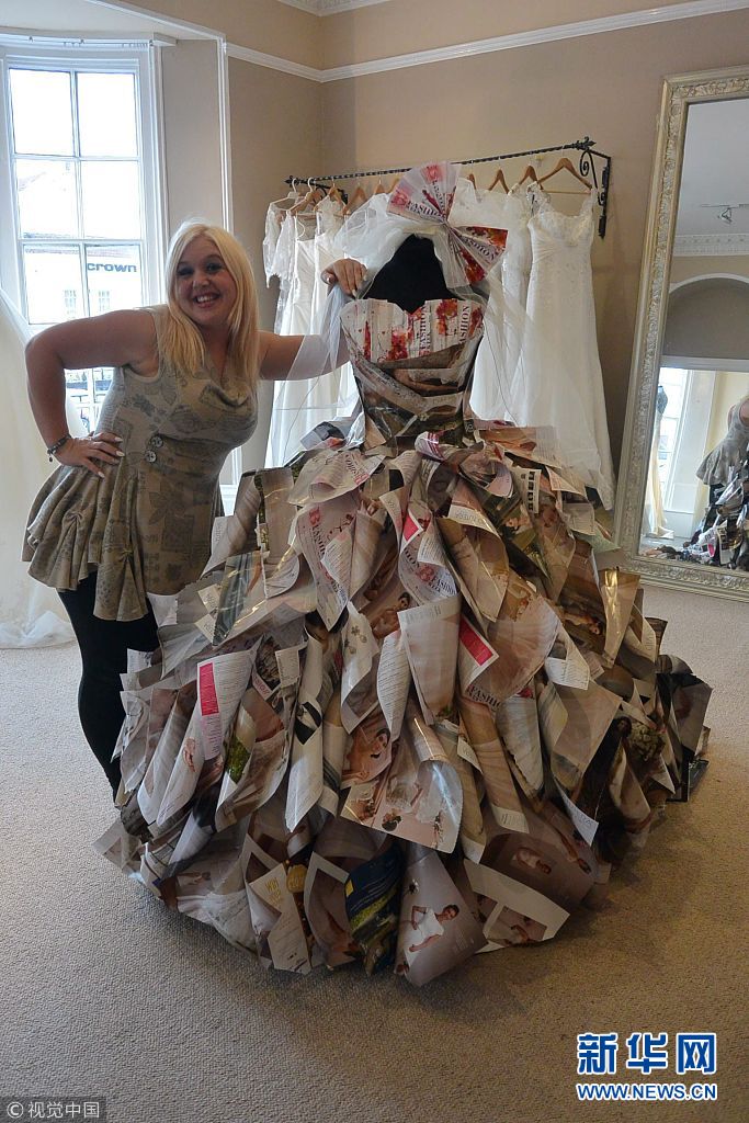 ????2015年3月23日消息(具體拍攝時(shí)間不詳),英國(guó),服裝設(shè)計(jì)師Kelly Currie利用舊的新娘雜志精心制作了一套婚紗,并在Bawtry時(shí)裝周閉幕時(shí)同其它禮服一起參加了新娘時(shí)裝秀。 (圖片來(lái)源:視覺中國(guó))