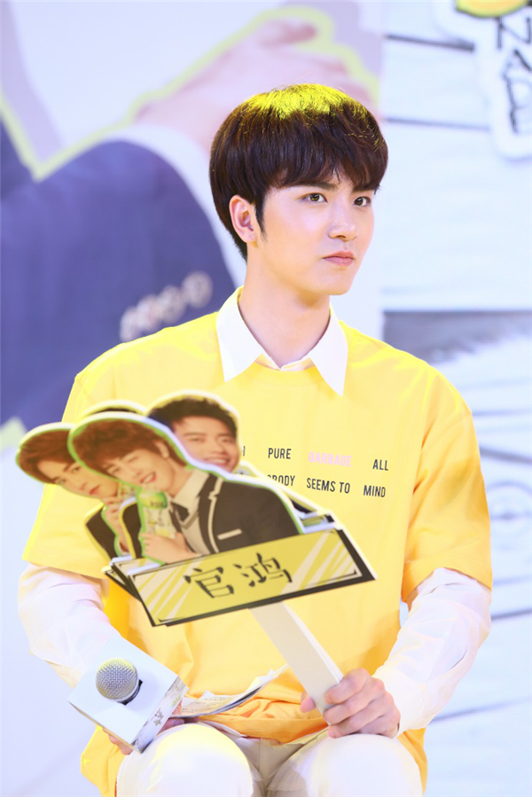 圖:現(xiàn)場快問快答環(huán)節(jié),F(xiàn)4成員吳希澤展示解膩超魅力