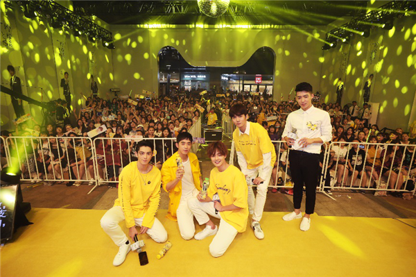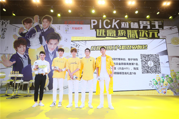 圖:達(dá)能檸檬來的見面會上F4帥氣現(xiàn)身,與粉絲親密合照