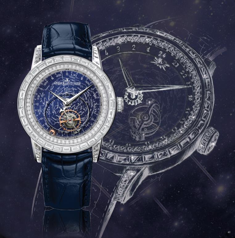 ????積家Master Grande Tradition Tourbillon Céleste超卓傳統(tǒng)陀飛輪大師系列星空腕表以讓人目眩神迷的方式詮釋時(shí)間。為了充分展現(xiàn)腕表的天文特性,軌道式飛行陀飛輪顯示的為恒星時(shí)間而非太陽(yáng)時(shí)間,比太陽(yáng)時(shí)間縮短近四分鐘。在這款腕表的表盤(pán)外沿,附帶太陽(yáng)標(biāo)志的指針以24小時(shí)為一周在表盤(pán)上轉(zhuǎn)動(dòng)。表圈顯示了24小時(shí)刻度、黃道十二宮星座與月份。軌道式飛行陀飛輪與星辰和星座同步運(yùn)轉(zhuǎn),和表盤(pán)共演一段恒星之舞。