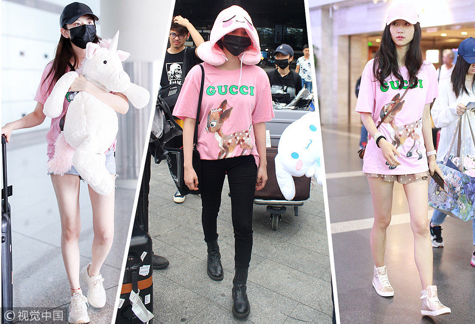 ????宋祖兒 VS 歐陽娜娜 VS 韓雪撞衫:Gucci粉色小鹿斑比T恤。 (圖片來源:視覺中國)