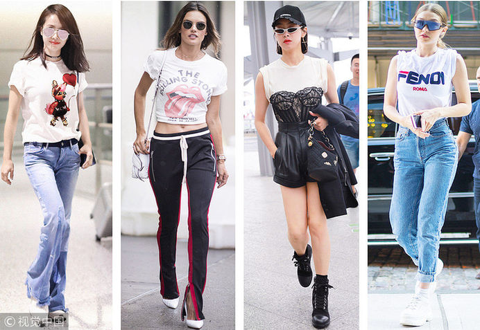 ????夏日炎炎怎么穿才最簡約清爽?答案一定是T恤無疑了!只是一本正經(jīng)的尋常穿法又怎么會(huì)是時(shí)髦精的所愛,宋茜、吉吉帶頭玩起挽袖新花樣,大面積露玉臂,清涼又養(yǎng)眼?。▓D片來源:視覺中國)