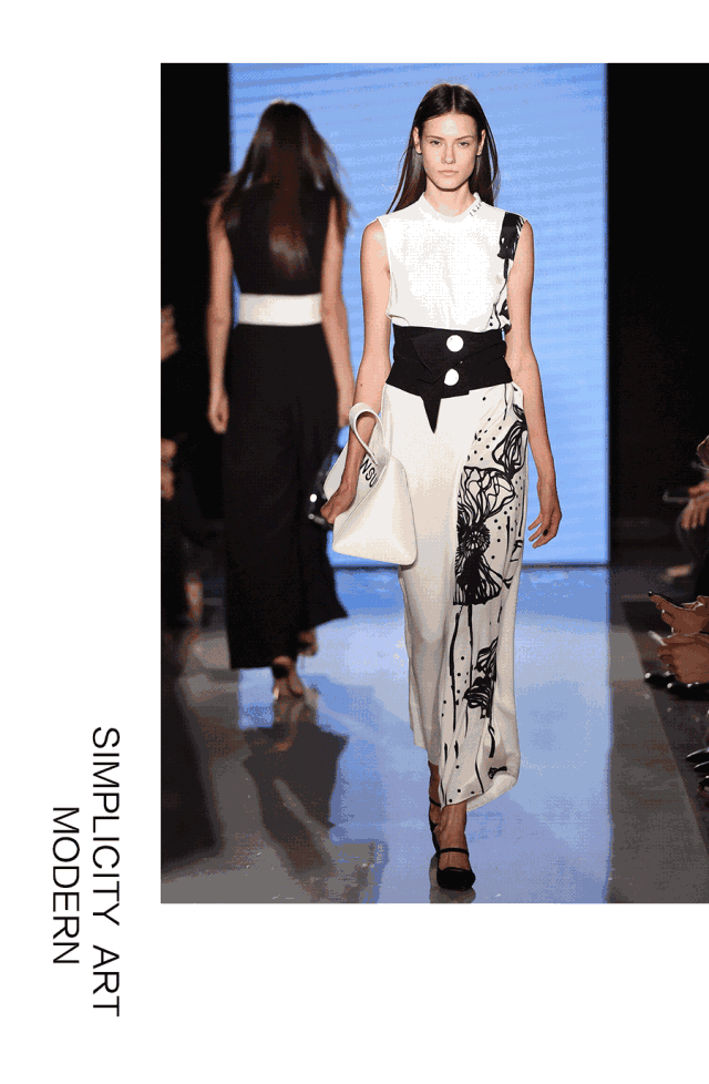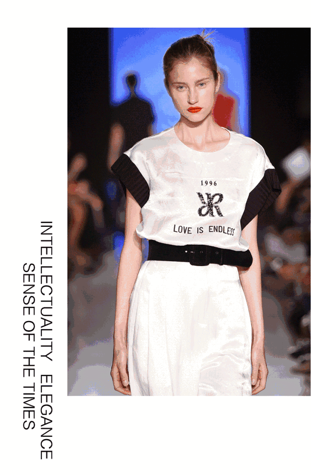 在材質(zhì)運用上,大膽擁抱多種流行面料,以材質(zhì)的混搭對撞帶來視覺的年輕化。色彩組合上,延續(xù)了品牌以往對高飽和度色彩的大膽組合,以及印花的多樣運用,繼續(xù)強化品牌知性優(yōu)雅、積極樂觀的女性精神。柔美廓形配合活力橙、神秘黑、高雅白,再點綴冷靜永恒的藍色系,讓整個系列呈現(xiàn)出飽滿而又輕盈的姿態(tài),充滿了活力無限的都市氣息。