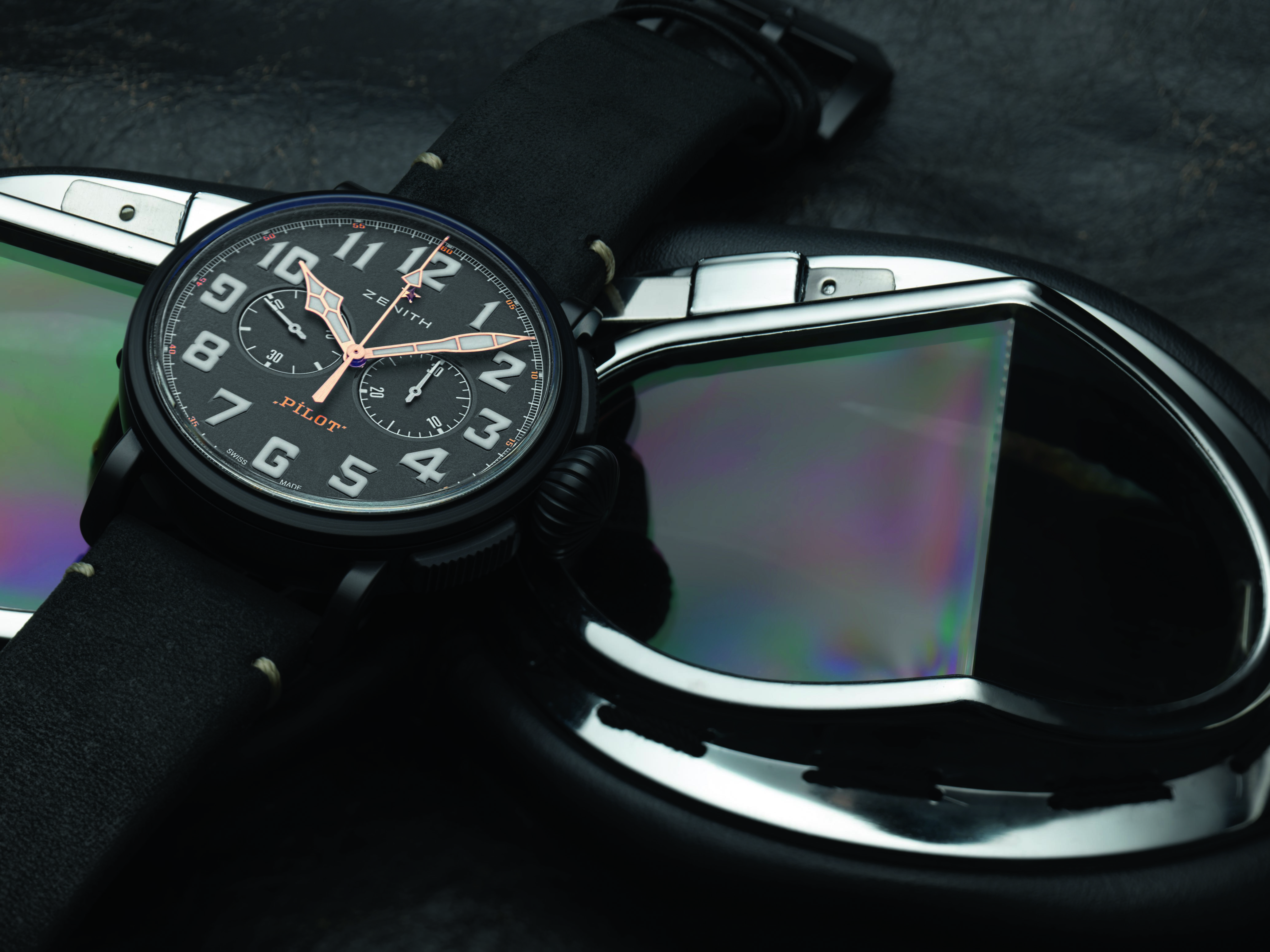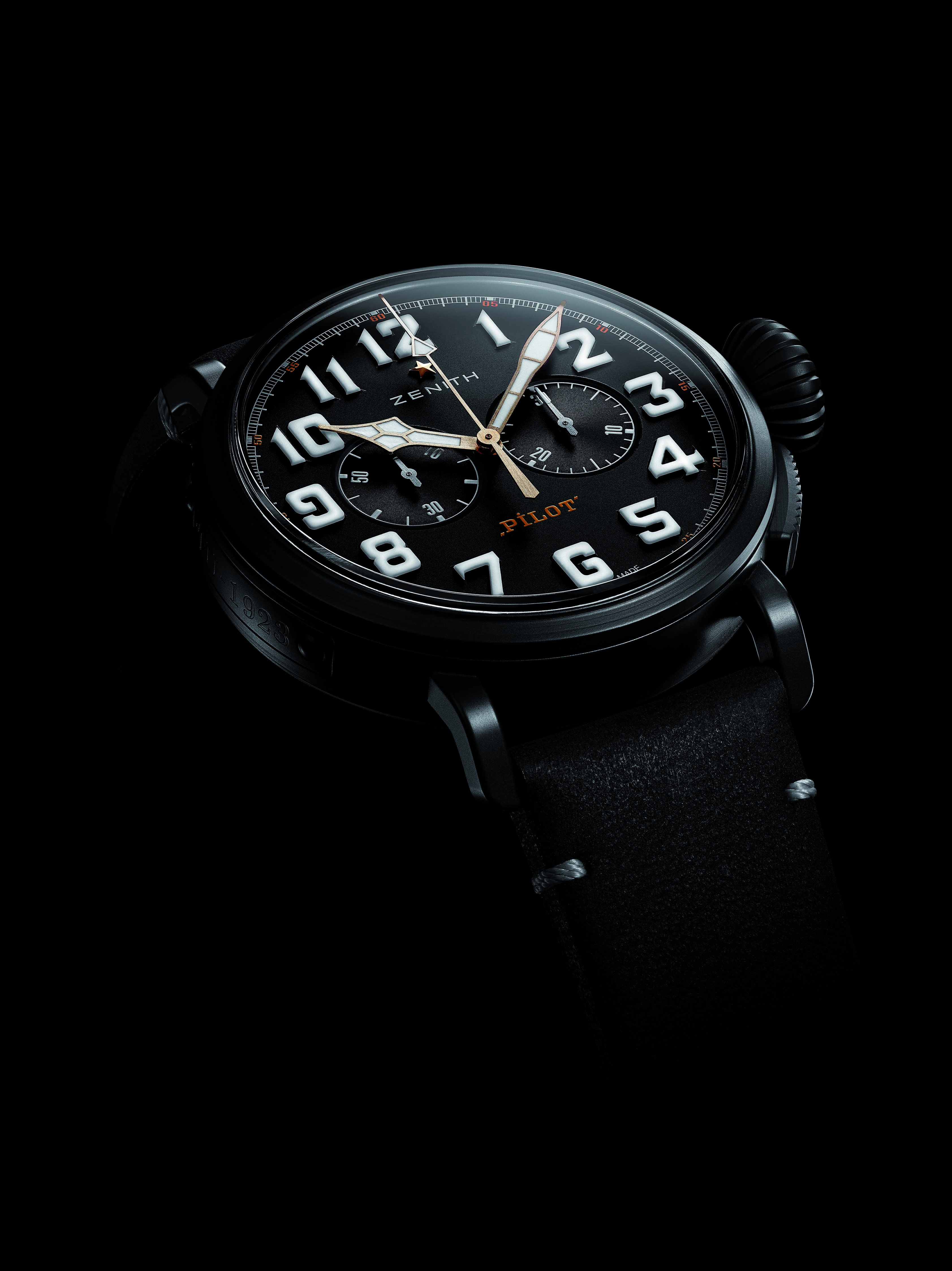 新款黑色的表盤(pán)非常簡(jiǎn)潔,不配備日期或日歷信息。大尺寸的分針和秒針(飛行員腕表的典型特征)以及阿拉伯?dāng)?shù)字時(shí)標(biāo)皆覆有SuperLumiNova?白色夜光涂層,外加雙計(jì)時(shí)碼表的輔助——9點(diǎn)位置的小秒針盤(pán)和3點(diǎn)位置的計(jì)時(shí)碼表分鐘計(jì)時(shí)器提供清晰的讀時(shí)。整塊腕表由真力時(shí)自制的傳奇EL PRIMERO4069型自動(dòng)機(jī)芯提供動(dòng)力,以5赫茲(每小時(shí)振動(dòng)36,000次)運(yùn)行,動(dòng)力儲(chǔ)備達(dá)50個(gè)小時(shí)。精準(zhǔn)的計(jì)時(shí)讓您穩(wěn)穩(wěn)地抓住每分每秒。