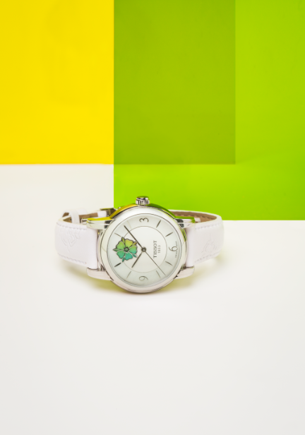 翻轉(zhuǎn)表盤,兩朵獨(dú)屬于天梭徽章的銀色玫瑰正在騎士的守護(hù)下傲然盛放。在天梭的經(jīng)典表款中,幾乎都可以發(fā)現(xiàn)天梭徽章的身影。其中,玫瑰寓意芳香,象征著女性的柔和之美;而鏤空處露出的金屬機(jī)芯又給人以堅強(qiáng)干練之感。二者合而為一,正是天梭所倡導(dǎo)的女性之美。佩戴天梭心媛系列彩虹玫瑰款腕表,正如有一位英武的騎士,于爛漫秋日守衛(wèi)著象征著永恒之美的彩虹玫瑰,而當(dāng)代女性外在的妙曼多姿與內(nèi)心的獨(dú)立堅強(qiáng),也通過這種設(shè)計完美呈現(xiàn)。