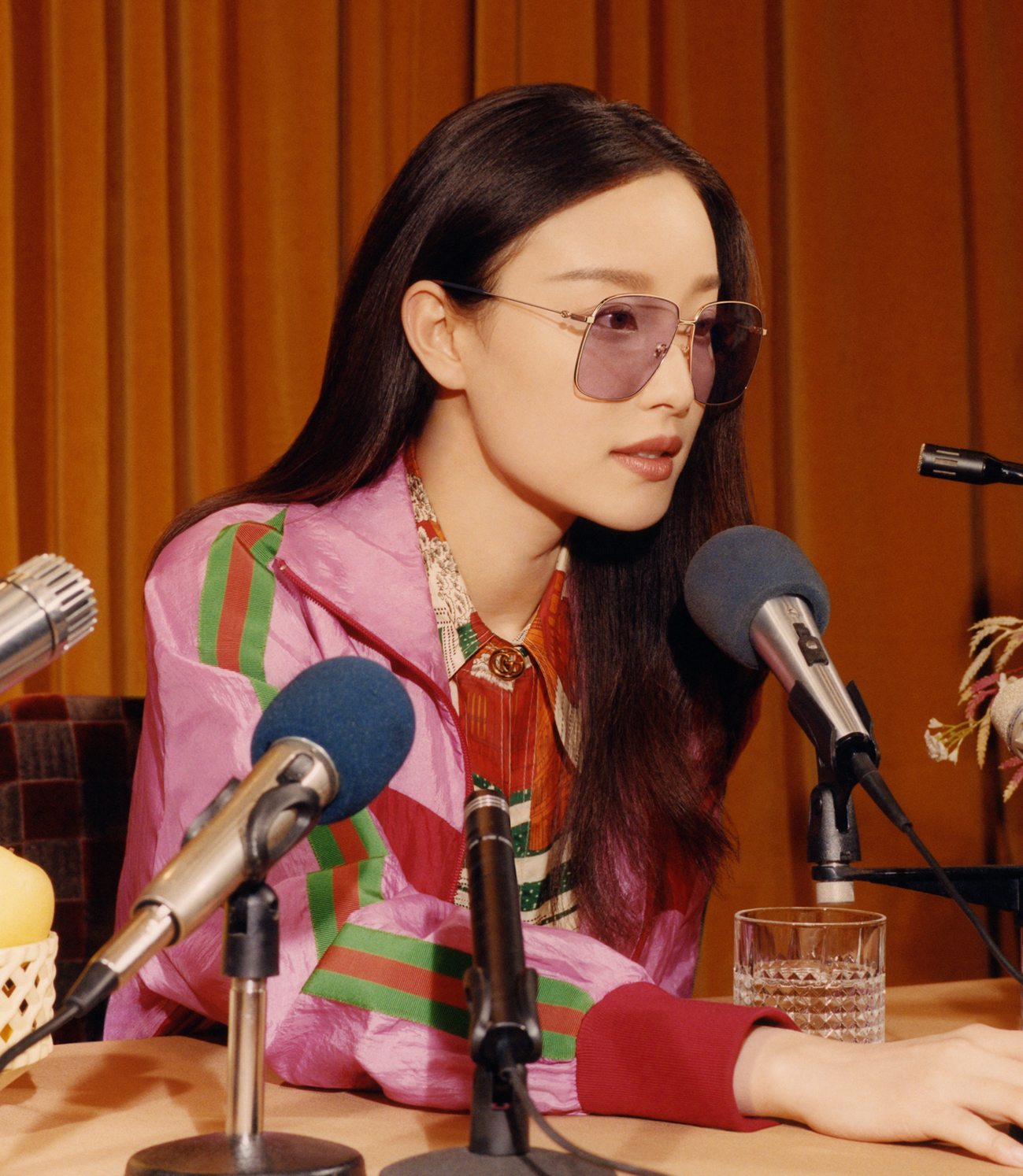 在廣告大片中,倪妮精彩演繹最新眼鏡系列,分別佩戴超大號(hào)光學(xué)眼鏡和淺粉色太陽(yáng)鏡,展現(xiàn)別具一格的復(fù)古摩登。大黃蜂,雙G標(biāo)識(shí),經(jīng)典條紋點(diǎn)綴于鏡片,鉸鏈及鏡腿,設(shè)計(jì)簡(jiǎn)約精致,極具當(dāng)代風(fēng)格。