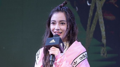 Angelababy粉色夾克+運動褲 梳蘋果頭嬌俏