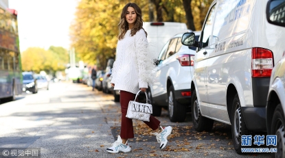 時(shí)尚博主街拍:毛衣+手袋+老爹鞋 簡約靚麗