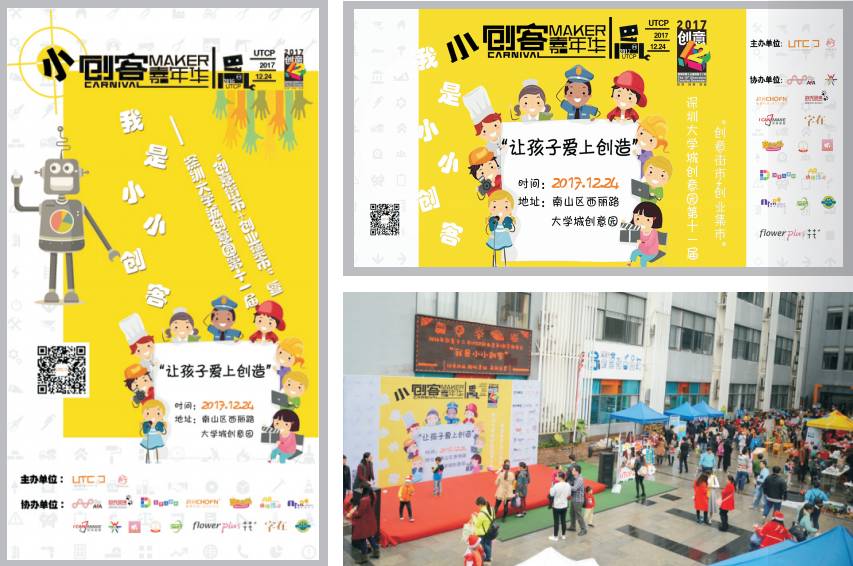 深圳大學(xué)城創(chuàng)意園主辦,活動以創(chuàng)意街市+創(chuàng)業(yè)集市的形式,展示、銷售孩子的創(chuàng)意產(chǎn)品,并結(jié)合專業(yè)創(chuàng)客實(shí)驗(yàn)室、3D打印、增強(qiáng)/虛擬現(xiàn)實(shí)、機(jī)器人等科技、技術(shù),讓孩子們在輕松投入的氛圍中體驗(yàn)最前沿的科技產(chǎn)品和創(chuàng)客項(xiàng)目?!皠?chuàng)新”、“實(shí)踐”、“分享”,活動旨在培養(yǎng)孩子們的動手創(chuàng)作能力、社會交往技能、團(tuán)隊(duì)協(xié)作、實(shí)踐技巧、集體榮譽(yù),拓展孩子們的創(chuàng)新創(chuàng)意思維,讓孩子愛上創(chuàng)造,逐步提升孩子的綜合能力,為將來更好地適應(yīng)社會的發(fā)展趨勢打好基礎(chǔ)。