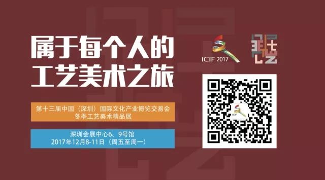 第十三屆文博會冬季工藝美術(shù)精品展由文博會組委會辦公室、中國工藝美術(shù)學(xué)會主辦,由深圳報業(yè)集團(tuán)、深圳國際文化產(chǎn)業(yè)博覽交易會有限公司、深圳市工藝美術(shù)行業(yè)協(xié)會承辦,于 2017年12月8日至11日在深圳會展中心6,9號館舉辦,展覽面積達(dá)22500平方米,薈萃我國工藝美術(shù)界頗具實力和代表性的展商和展品資源。展會期間,將配套舉辦第十三屆中國工藝美術(shù)文化創(chuàng)意獎評獎活動。