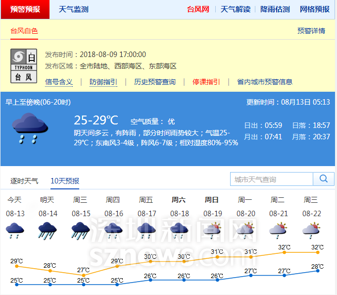 深圳市氣象臺預(yù)報員張麗表示,深圳將較長時間受熱帶低壓外圍環(huán)流影響,8月12日-15日將持續(xù)間歇性頻密降雨,這4天累積降雨量將達(dá)100-150毫米,局部250毫米以上;其中,8月12日-13日,有大雨,局部暴雨;8月14日-15日為降雨最強時段,有暴雨到大暴雨,最大小時雨強50-80毫米,沿海和高地最大陣風(fēng)8-9級;8月16日開始,雨勢減弱。