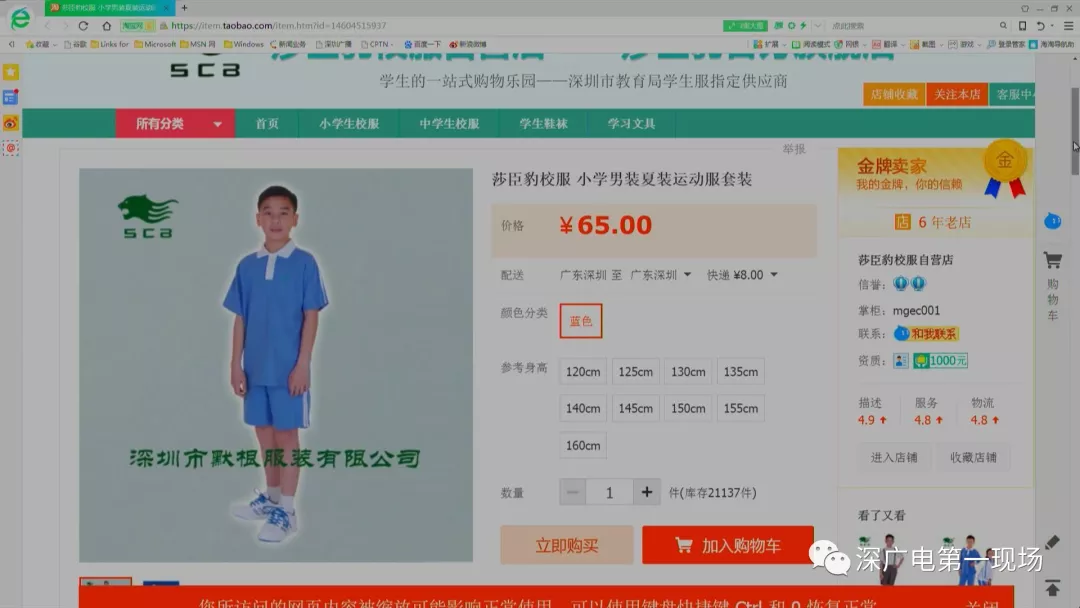 福田家長(zhǎng)蔡先生的孩子今年上小學(xué)一年級(jí),幾天前,蔡先生為孩子購(gòu)買(mǎi)了一套夏季運(yùn)動(dòng)服,孩子試穿合身之后,上周六,他再次前往校服店,準(zhǔn)備再買(mǎi)一套,卻發(fā)現(xiàn)同樣一套校服,價(jià)格已經(jīng)是今非昔比。8月15號(hào)買(mǎi)的是53元,現(xiàn)在漲到了65元。