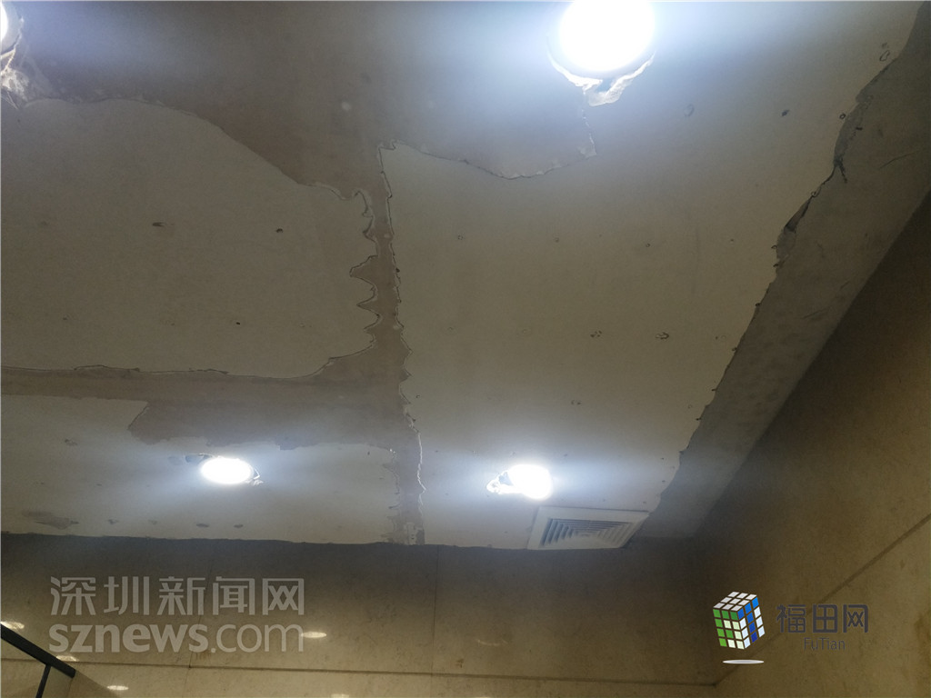 購物公園負一樓公廁由于使用年代較久,天花板破舊。