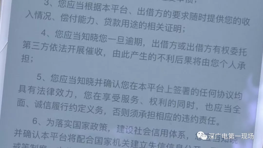 目前,盧先生已經(jīng)結(jié)清了前兩期的還款和逾期費(fèi)用,記者在借貸平臺(tái)的風(fēng)險(xiǎn)告知書看到,第四條寫明借款人一旦逾期,出借方有權(quán)委托第三方依法開展催收。