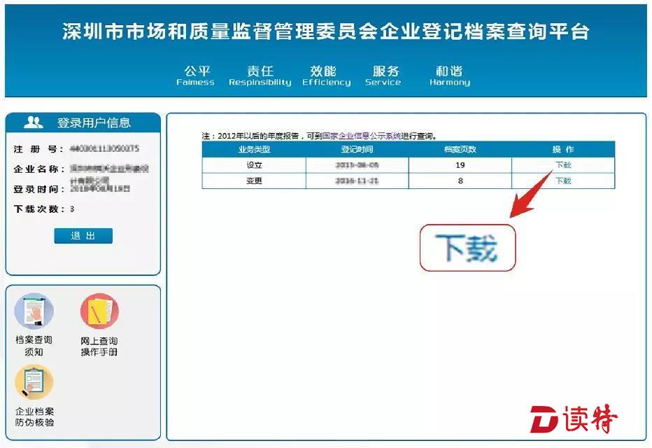 驗證成功后,電腦顯示進(jìn)入查詢頁面,顯示與登錄人有關(guān)的企業(yè)名稱。點擊要查詢檔案的企業(yè)名稱,顯示列出“企業(yè)登記檔案”。