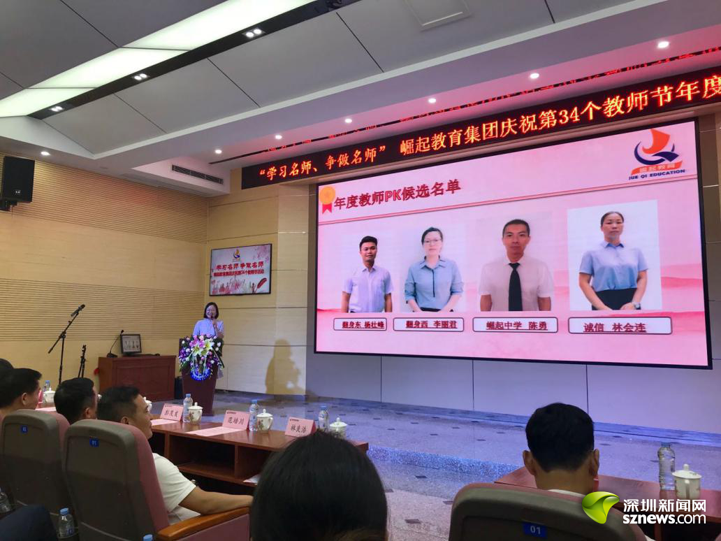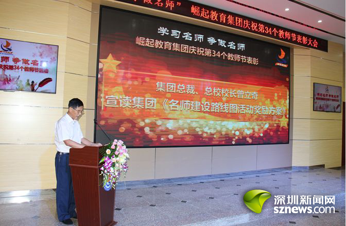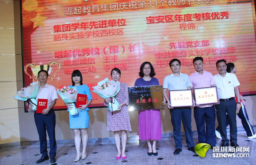 深圳新聞網(wǎng)訊 (記者 曹園芳)2018年9月10日,崛起教育集團在崛起實驗中學舉行慶祝第34個教師節(jié)暨表彰大會。崛起教育集團董事局主席林良浩、集團旗下各學校領(lǐng)導、優(yōu)秀教師代表、教職工代表,以及深圳市寶安區(qū)教育局副局長、寶安區(qū)教育科學研究院院長、寶安區(qū)教育局民辦教育管理科科長、寶安區(qū)民辦教育協(xié)會秘書長、寶安區(qū)教育局第一學區(qū)教育辦主任、寶安區(qū)教育局第三學區(qū)教育辦主任等來自社會各屆的領(lǐng)導、嘉賓出席了大會。