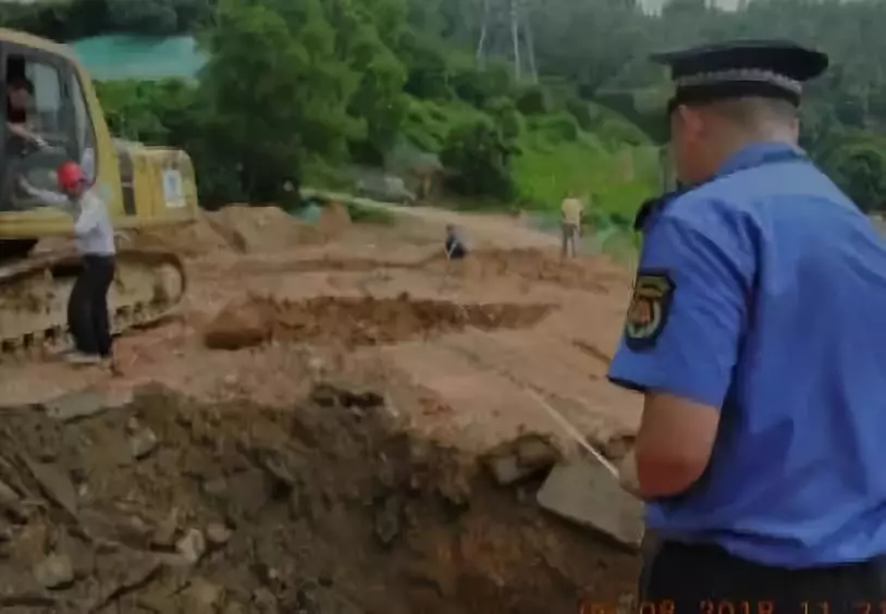 執(zhí)法隊介紹,這里是正在建設中的大井山生態(tài)公園的工地。土方開挖,自然會形成一些洼地。
