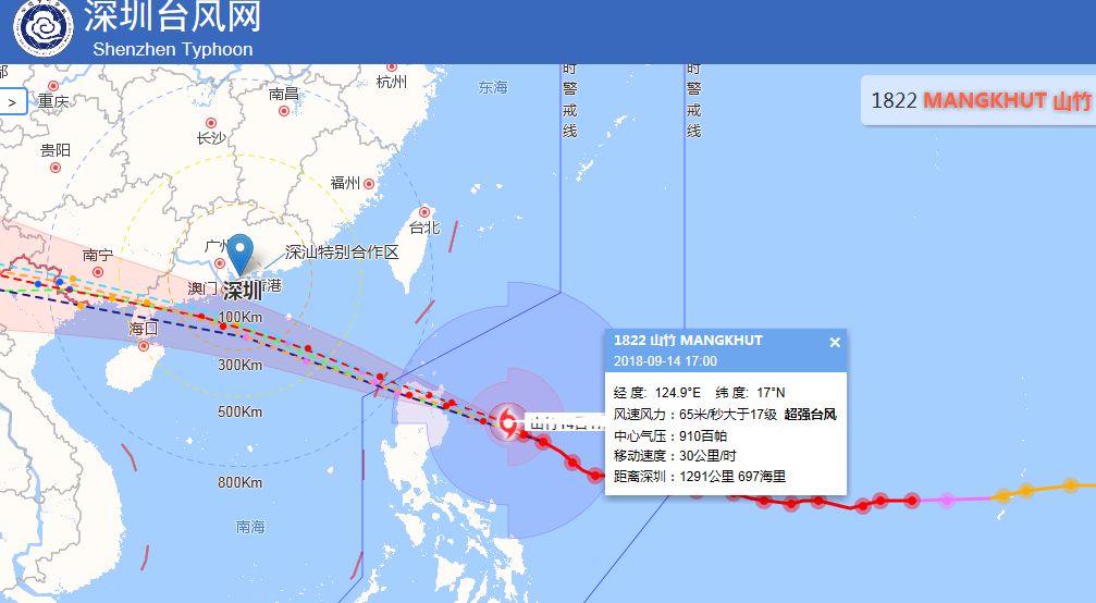 深圳市氣象臺已于2018年09月14日12時(shí)30分在全市發(fā)布臺風(fēng)白色預(yù)警,預(yù)計(jì)“山竹”將可能在48小時(shí)內(nèi)影響我市,全市進(jìn)入臺風(fēng)注意狀態(tài),遵照海事、漁政部門的防風(fēng)指令或通知,做好避風(fēng)準(zhǔn)備。