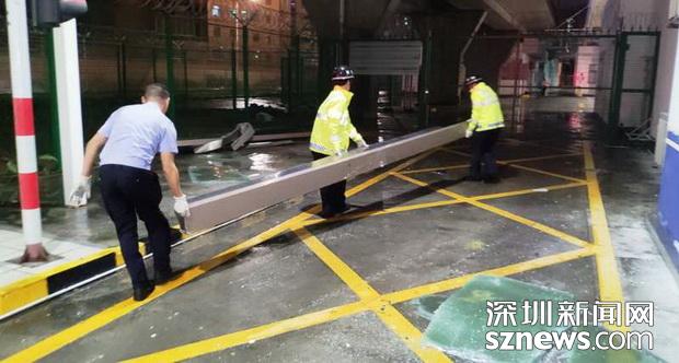 24:00,超強(qiáng)臺(tái)風(fēng)基本過(guò)境,警戒隊(duì)的民警在皇崗口岸限定區(qū)域巡查清理、扶起被狂風(fēng)吹倒的隔離設(shè)施、挪除被刮得到處都是的路標(biāo)指引、查看各執(zhí)勤場(chǎng)地是否通行順暢,逐一將口岸恢復(fù)成往常井然有序的模樣。