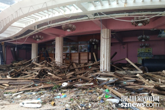 小梅沙旅游度假村景區(qū)內(nèi)沙灘海沙被卷走超7萬多立方,約2000米的堤岸及道路沖垮,公共、建筑設(shè)施及構(gòu)筑物全部受損,部分完全損毀,13處經(jīng)營(yíng)管理場(chǎng)所損毀,綠化、樹木等嚴(yán)重破壞,直接經(jīng)濟(jì)損失預(yù)估超過5000萬元。